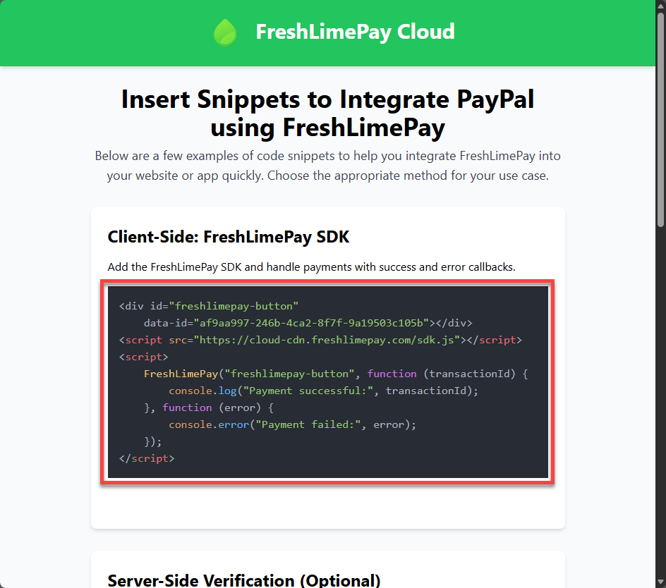 As shown throughout this guide, you can integrate PayPal payments into your website within minutes using FreshLimePay Cloud — no PayPal expertise required.